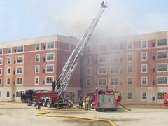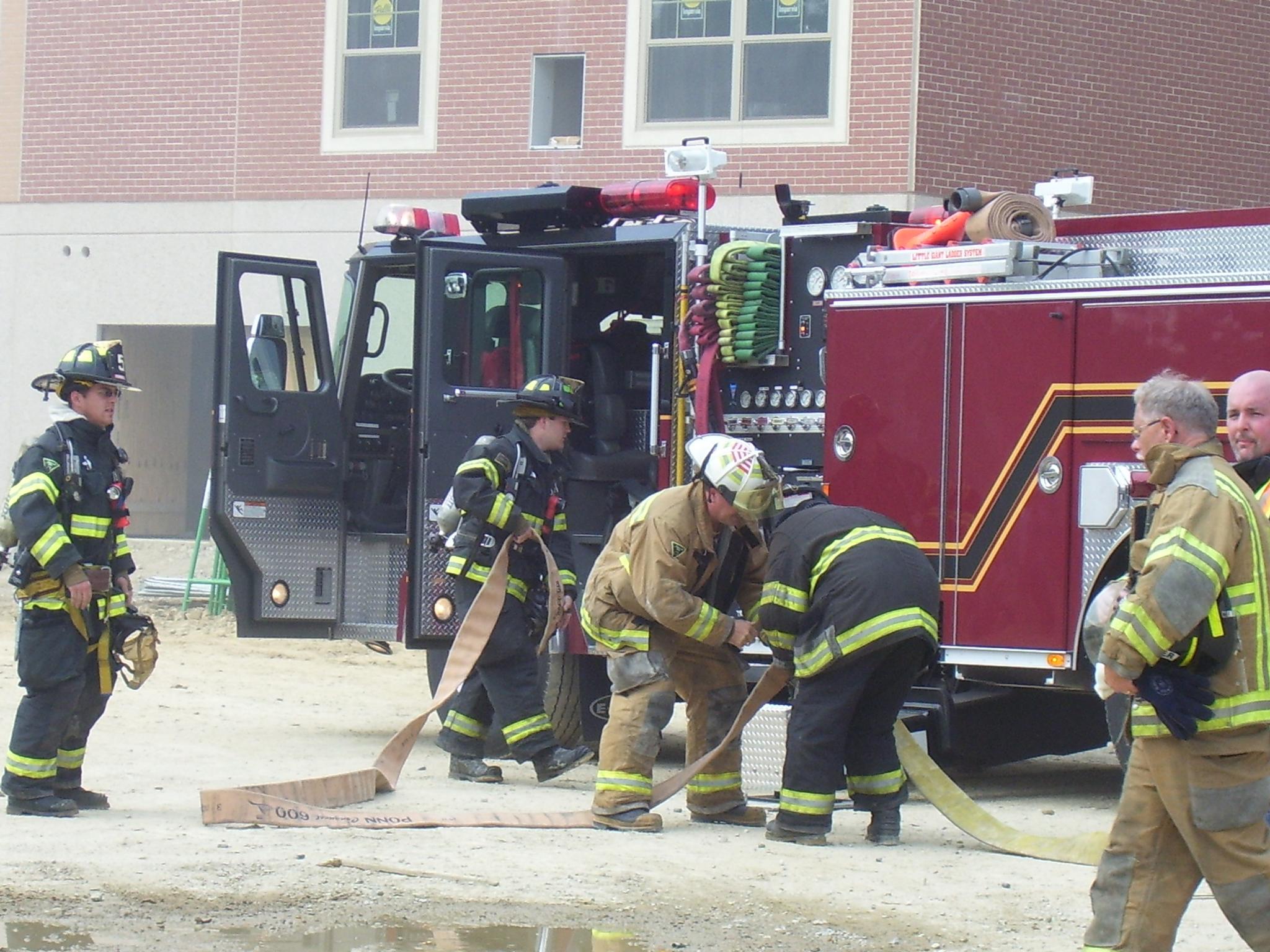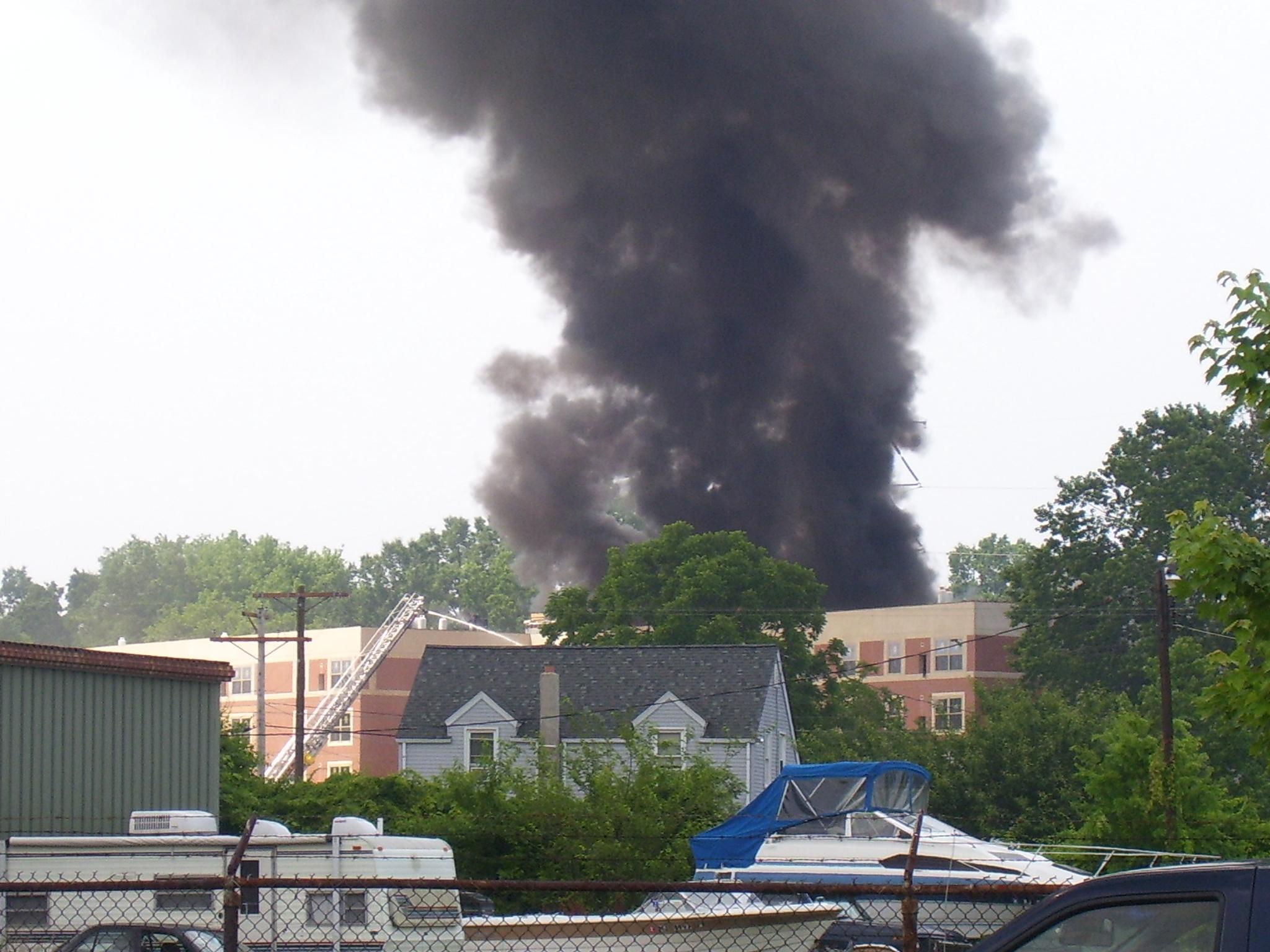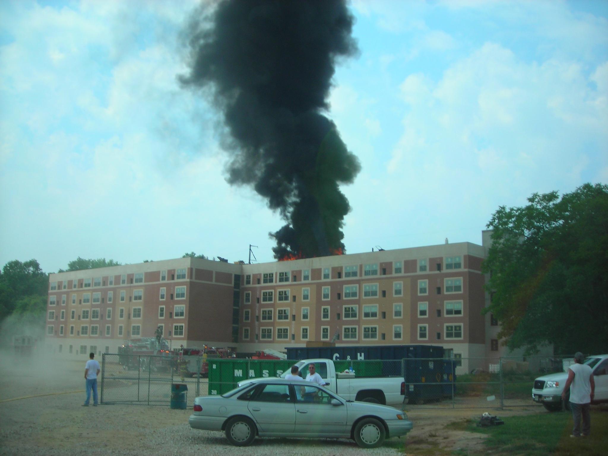 On June 8, 2007 at 10:36 a.m. Deputy Chief 5-10A was returning to New Jersey via the Del. Mem. Br. when he saw a column of smoke in the area of Kent Ave. After arriving at a new 5 story retirement building under construction, it was apparent that a large roof fire was the cause of the smoke. A fire ignited while hot tar was being poured on the new roof. Chief 5-10A radioed his findings to Salem County Communications, to which they responded they were in the process of dispatching units after receiving several 911 calls. Chief 5-10A directed Engine 7-1 to lay in from a hydrant on Kent Ave. and set up to supply Quint 5-6. Due to the roof being constructed of concrete, damage was limited and it was reported that the fire would not delay the opening of the building. Command was transferred to Deepwater Fire Co. as the fire was in their district. Other units on scene included Ladder 6, Engine 11, FAST 12, Rescue 5, and Engine 7-2.