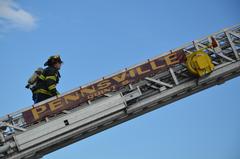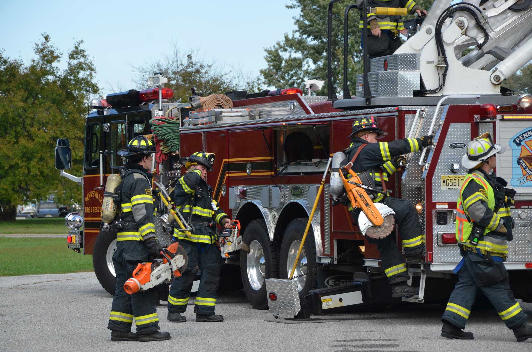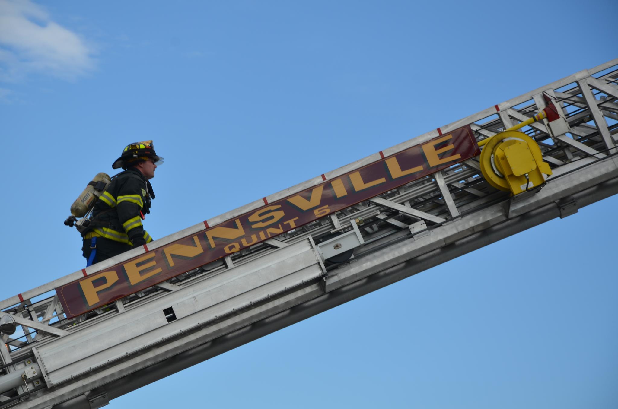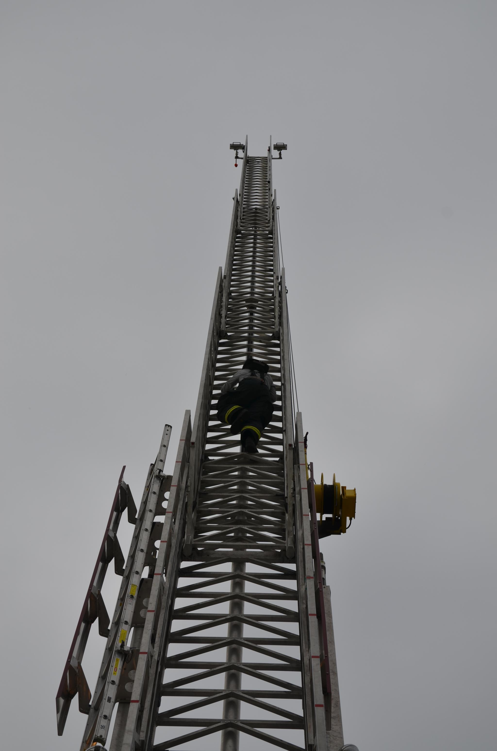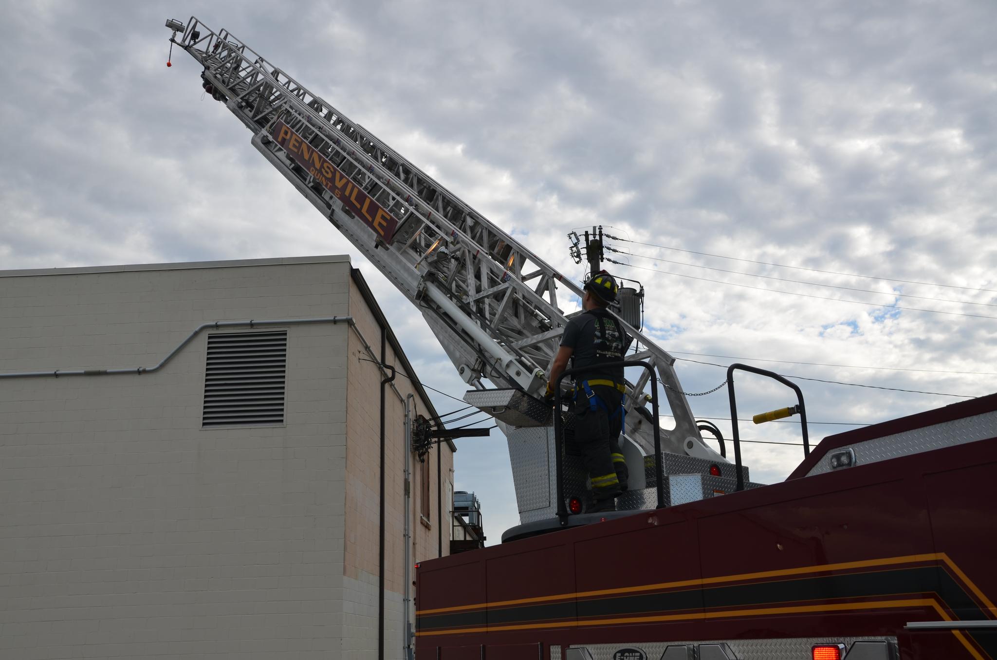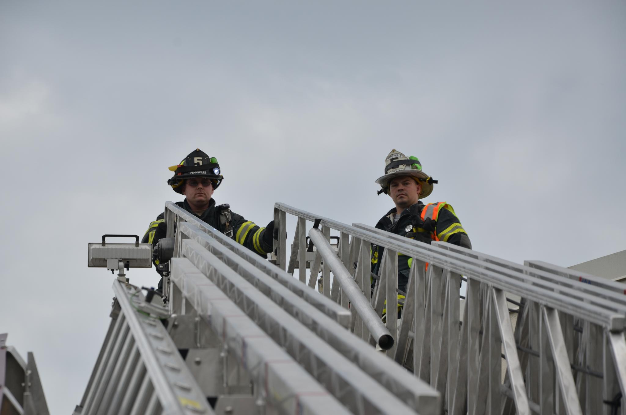 deputy chief Hagan explains proper safety of aerial ladder to ff Sean dennis