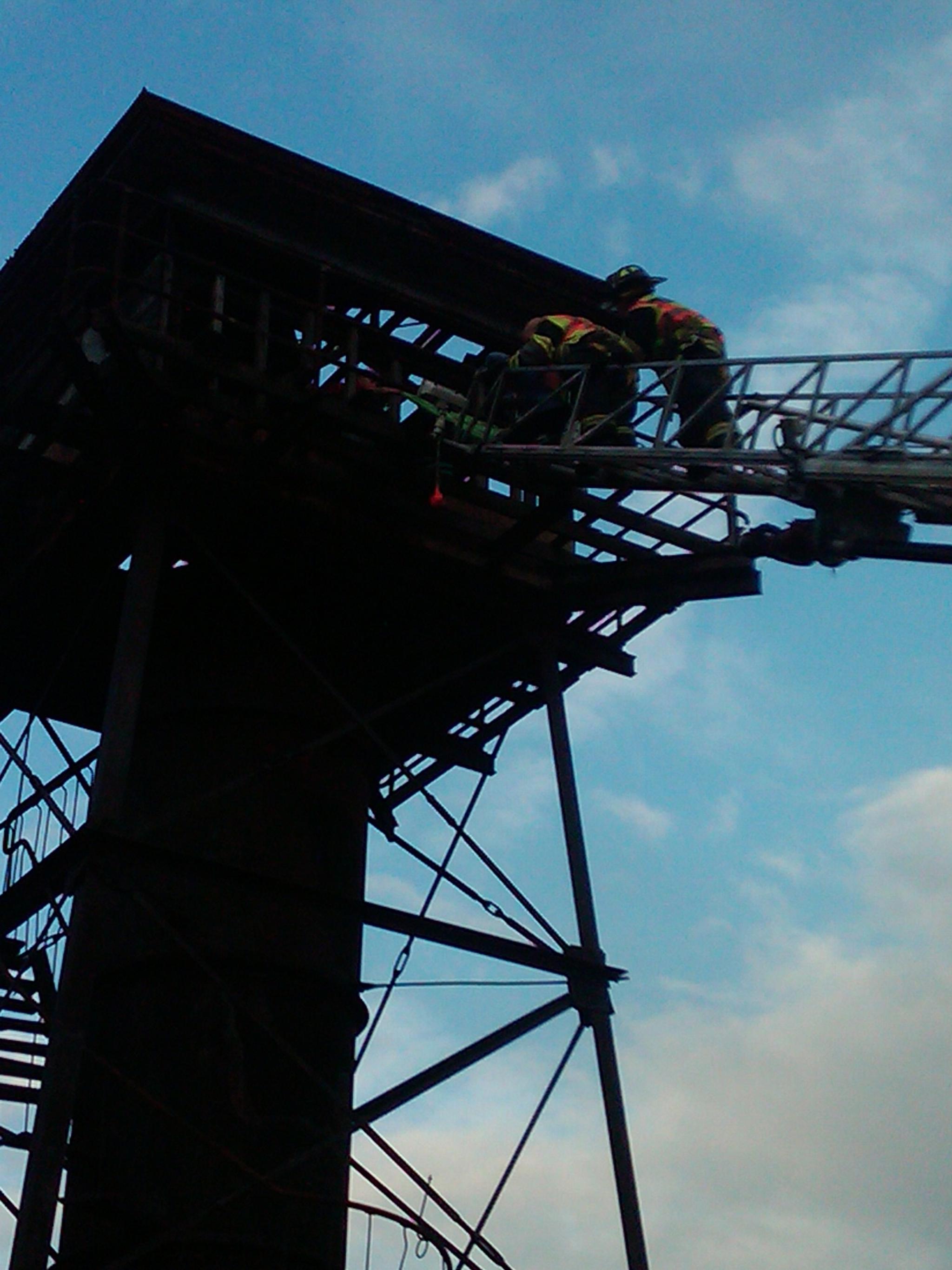On October 6, 2010 at 1735, Station 5 and BLS 5-8 were dispatched to Ft. Mott State Park for a rescue assignment. On arrival, Deputy Chief Hagan established command and found 4 juveniles on top of the old fire control tower for Ft. Mott. This tower was used to control targeting of the guns from the old fort. Quint 5-6 was used to reach the tower and safely remove all of the juveniles. No injuries occurred during the rescue.