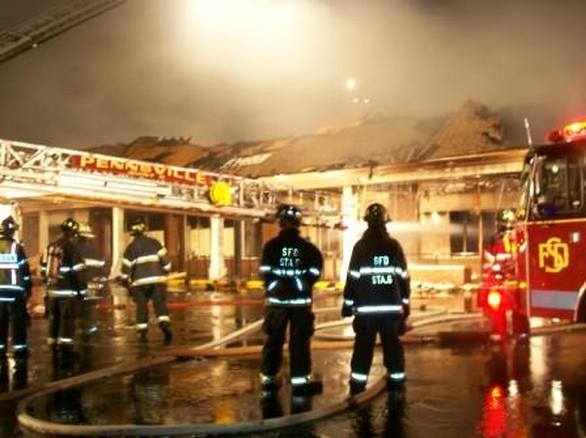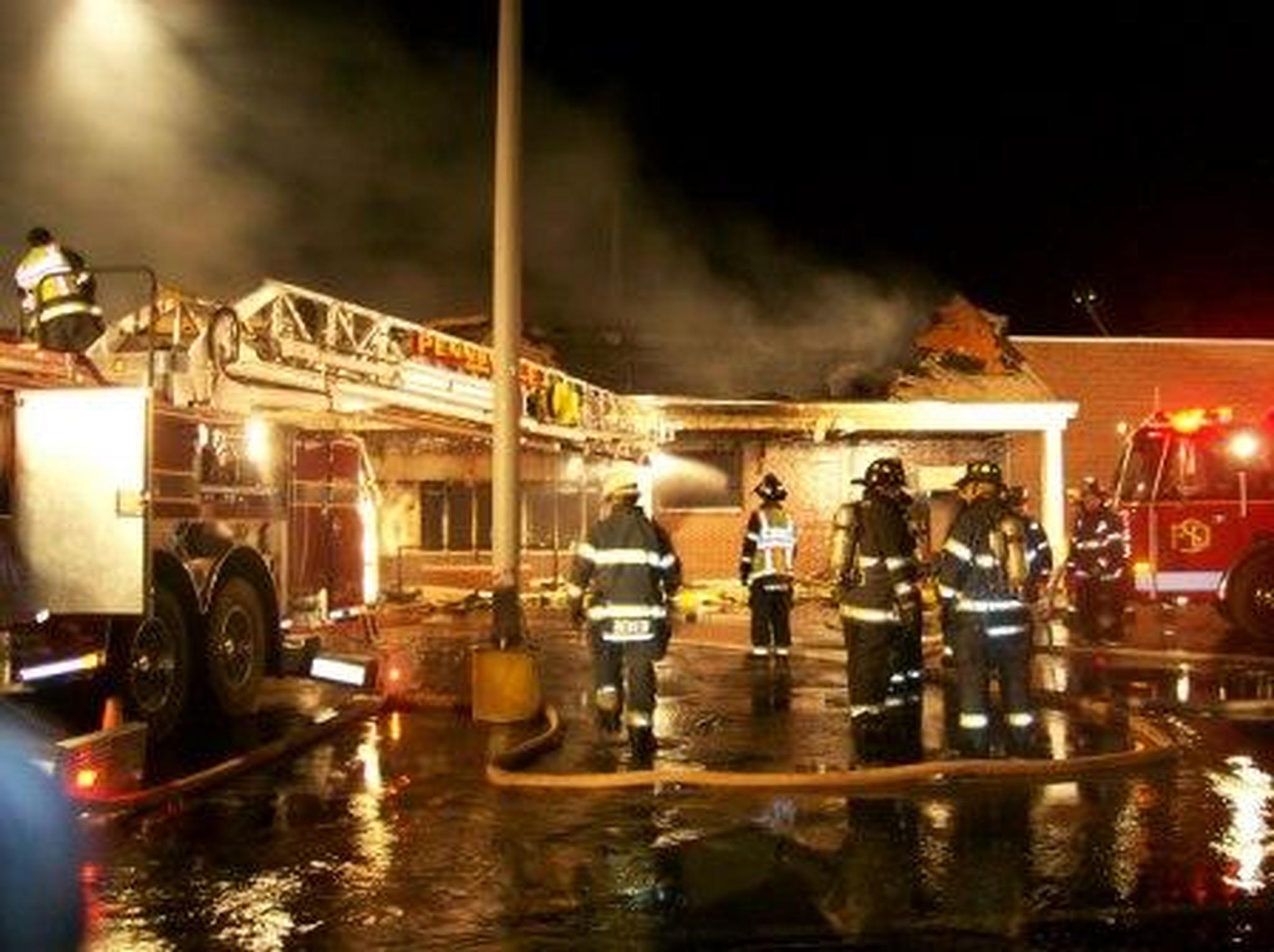 On March 25, 2008 at 11:23 p.m., Pennsville Fire & Rescue was dispatched to assist the Salem Fire Department with a working building fire at a shopping plaza. Due to smoke showing from such a large building, a second alarm was initially dispatched. Quint 5-6 responded as FAST(RIT), but went into service as a truck company as the fire worsened. Firefighters went into the structure but were quickly pulled out due to worsening conditions. Heavy smoke flashed over to fire and Quint 5-6 put its elevated master stream into service, as well as a portable ground monitor. Pennsville firefighters were in service for 4 1/2 hours until released by command.